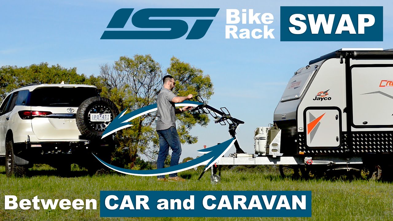 The modular iSi system allows a single bike rack to move between vehicle tow bar and caravan drawbar in minutes, using shared components.